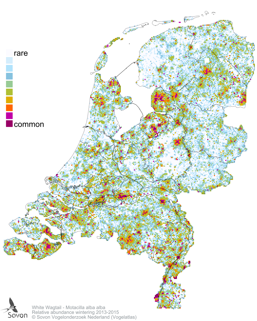 Numbers and distribution of breeding- and wintering birds in The Netherlands