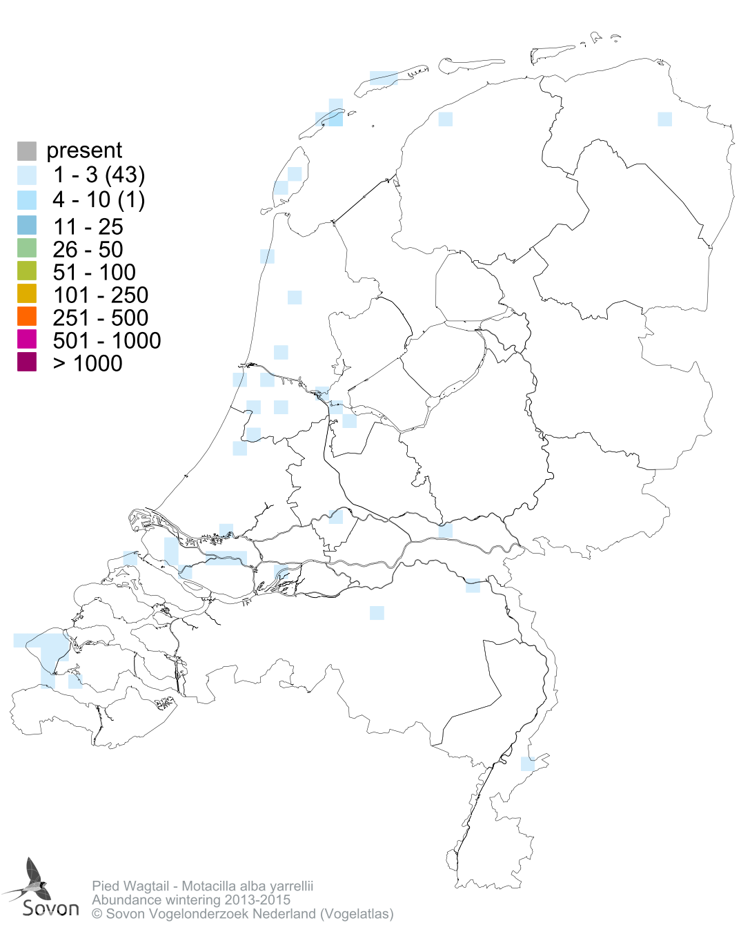 Numbers and distribution of breeding- and wintering birds in The Netherlands
