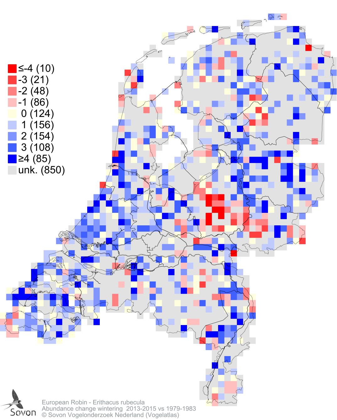 Numbers and distribution of breeding- and wintering birds in The Netherlands
