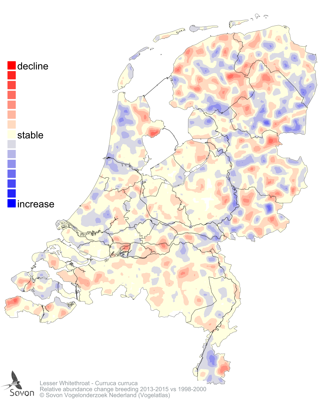 Relative abundance change breeding 2013-2015 vs 1998-2000