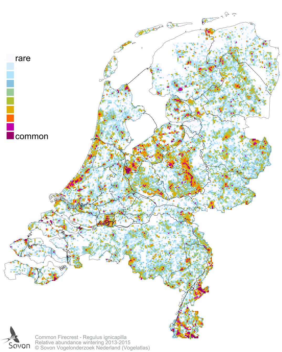 Numbers and distribution of breeding- and wintering birds in The Netherlands