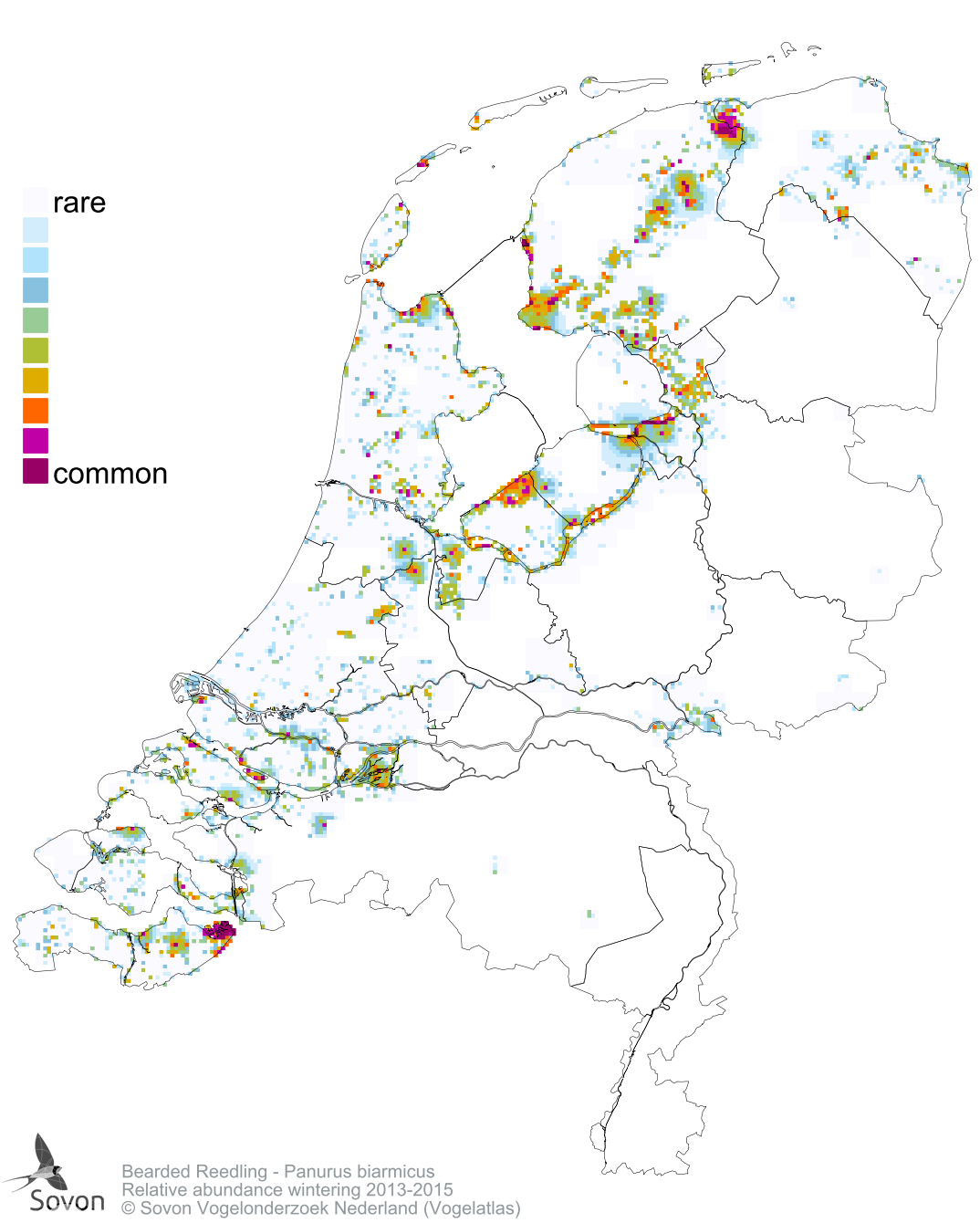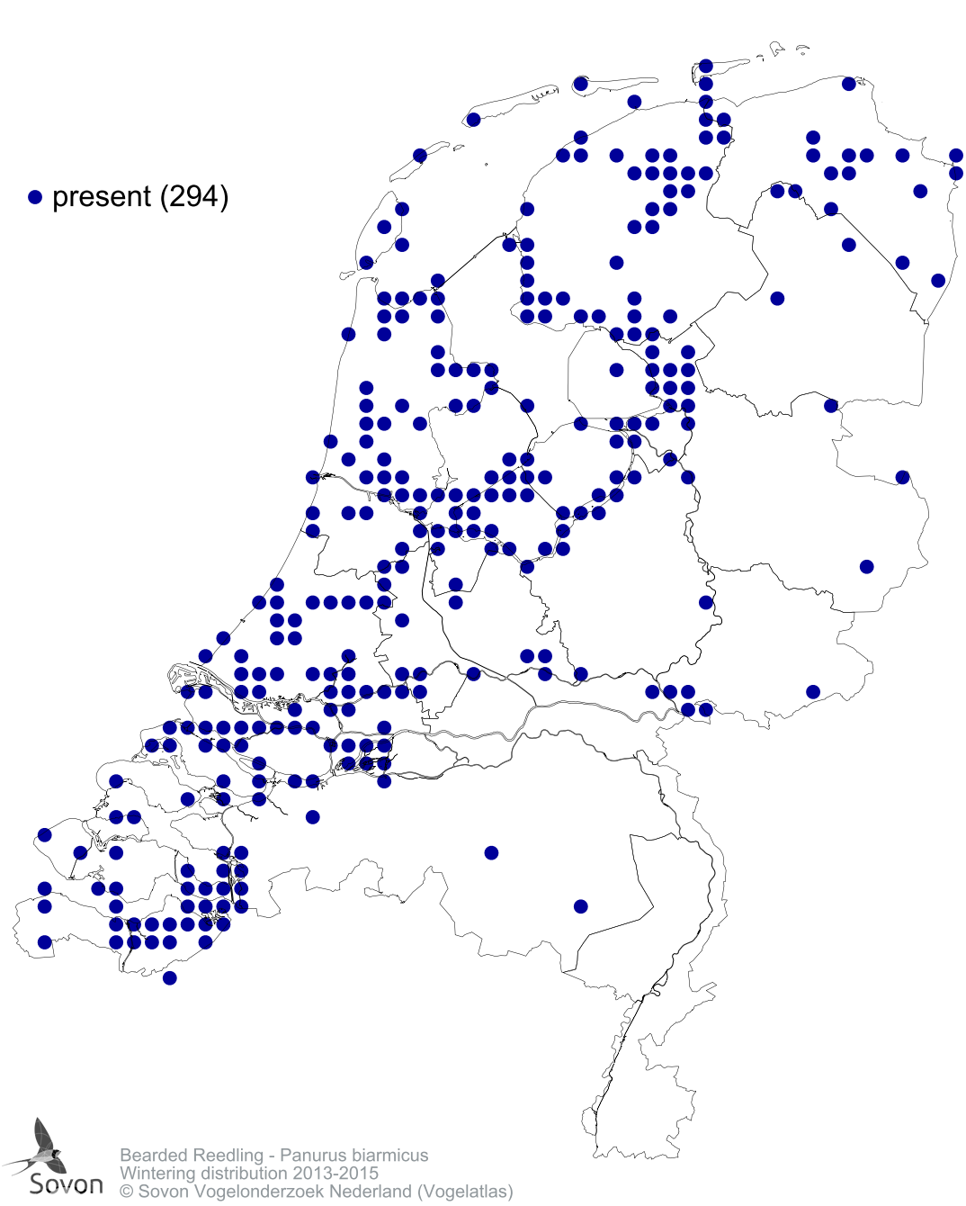 Numbers and distribution of breeding- and wintering birds in The Netherlands