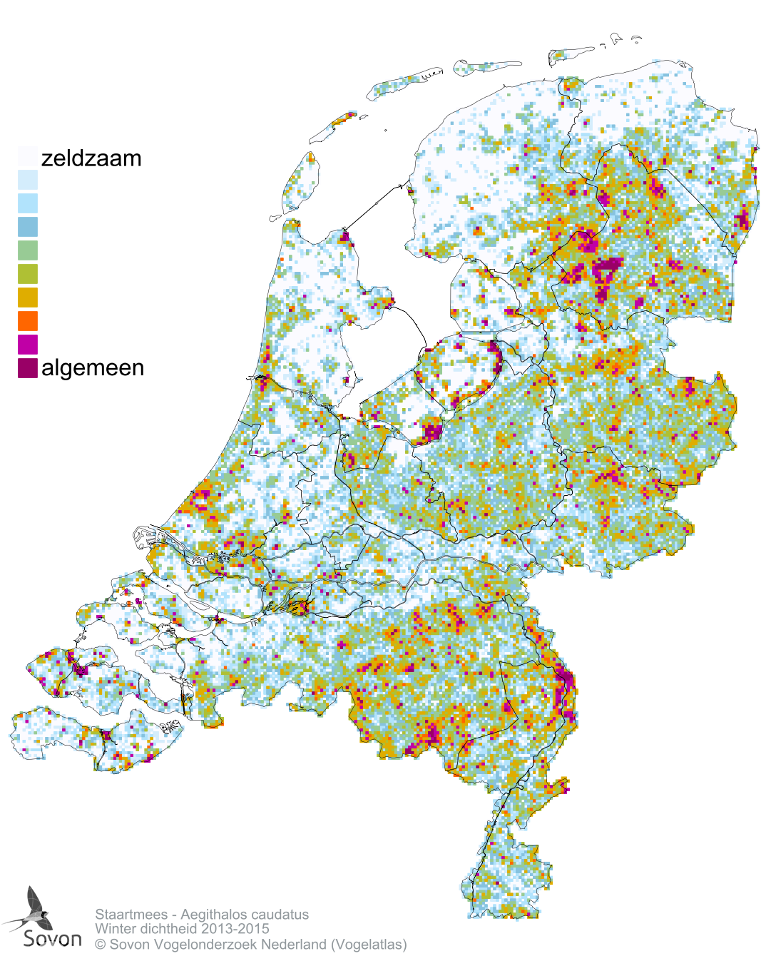 Numbers and distribution of breeding- and wintering birds in The Netherlands