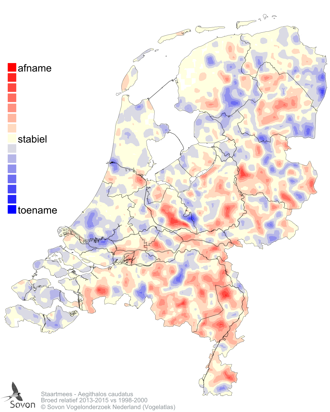 Relative abundance change breeding 2013-2015 vs 1998-2000