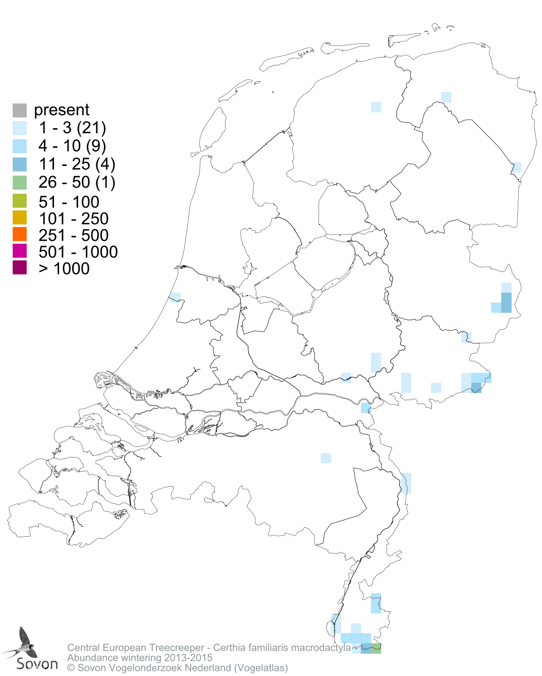 Numbers and distribution of breeding- and wintering birds in The Netherlands