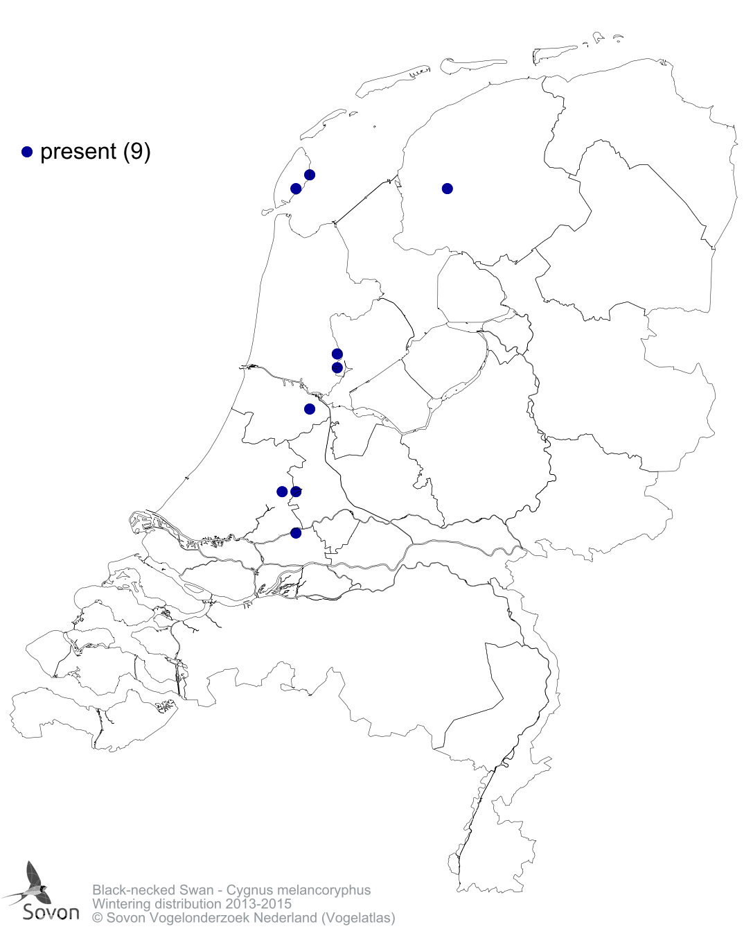 Numbers and distribution of breeding- and wintering birds in The Netherlands