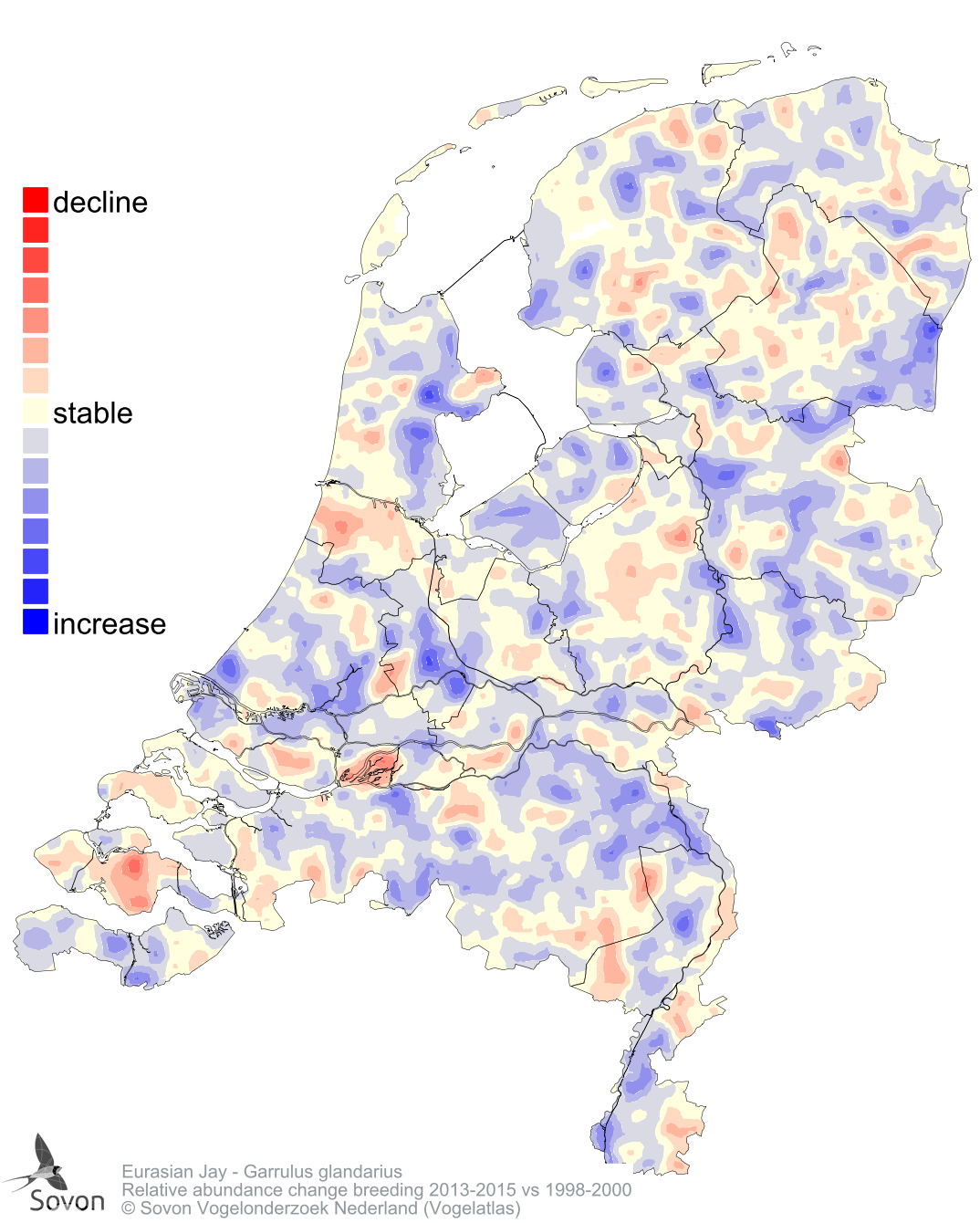 Relative abundance change breeding 2013-2015 vs 1998-2000