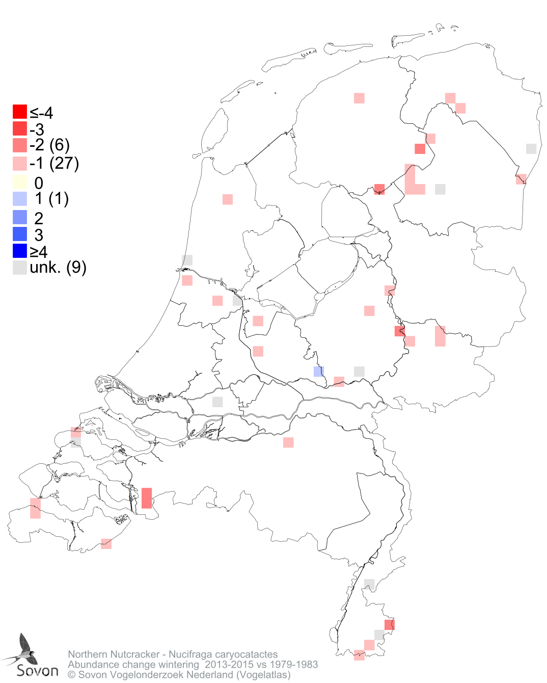 Abundance change wintering 2013-2015 vs 1979-1983