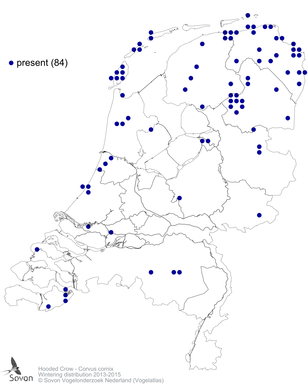 Numbers and distribution of breeding- and wintering birds in The Netherlands
