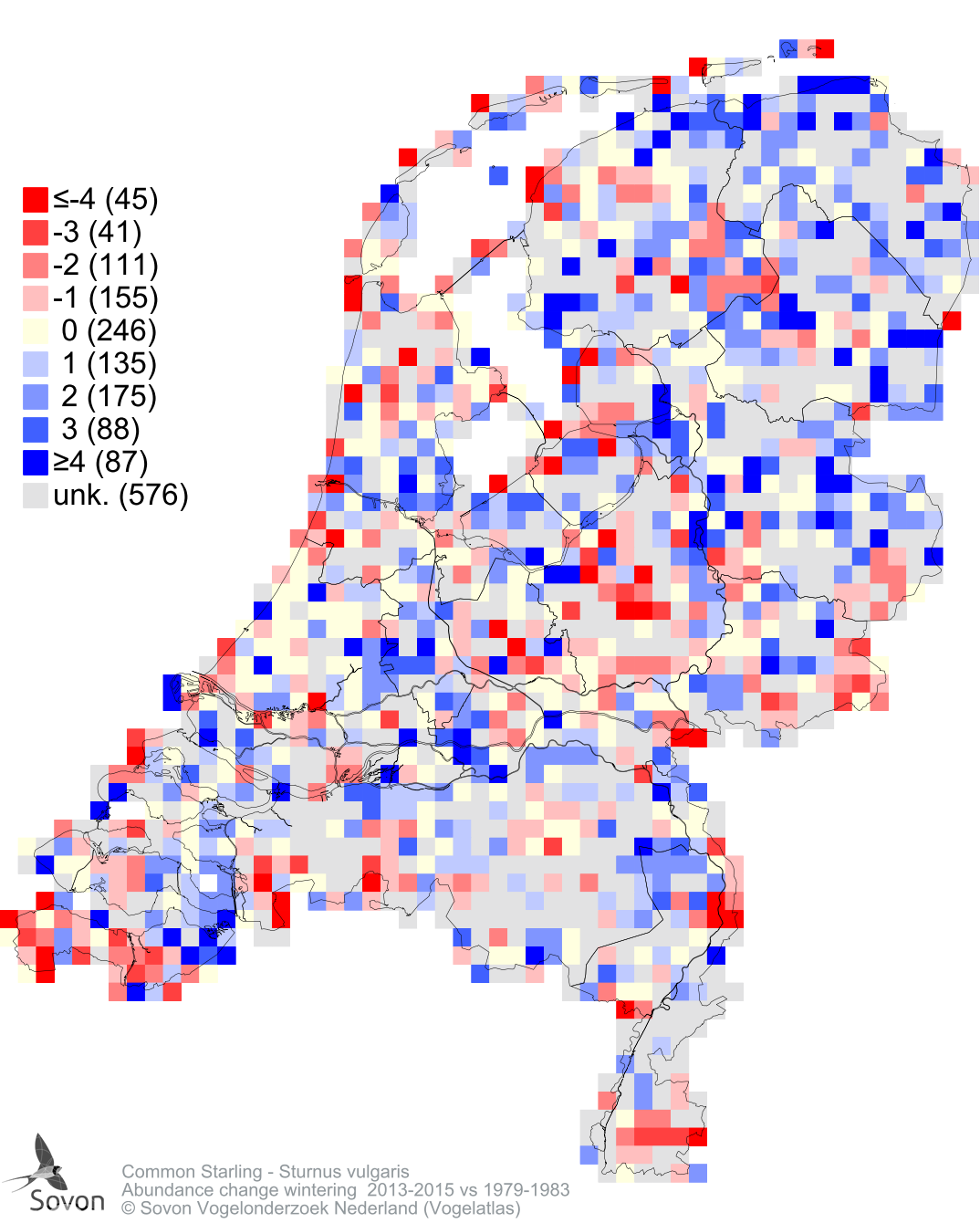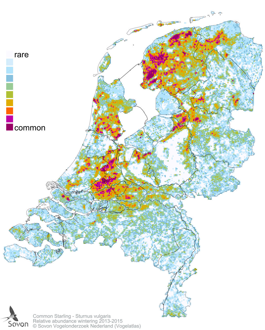 Numbers and distribution of breeding- and wintering birds in The Netherlands