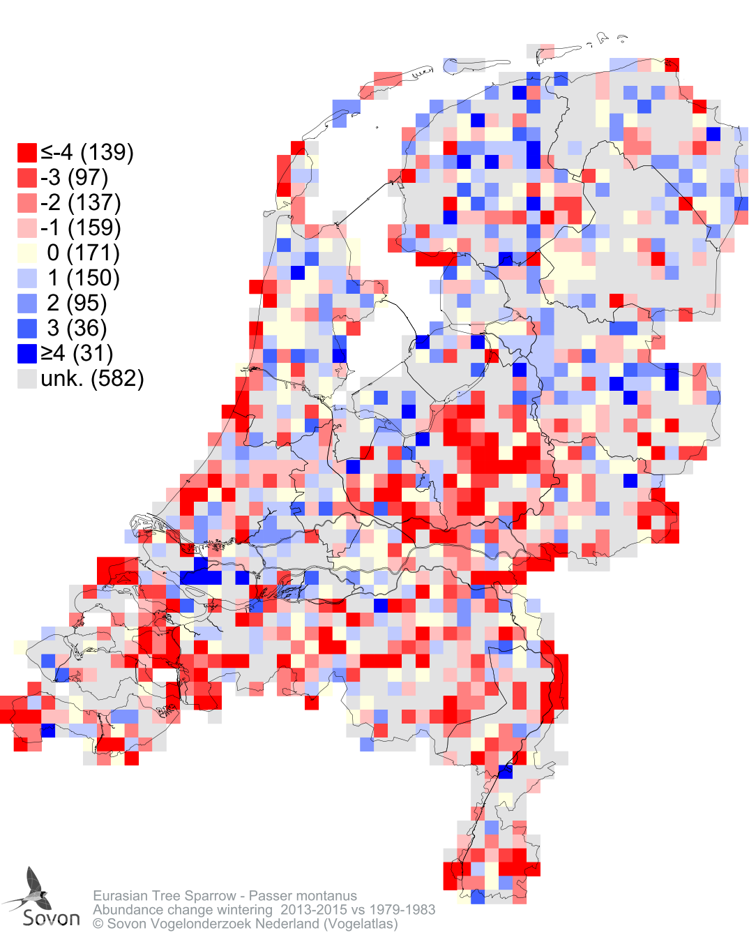 Numbers and distribution of breeding- and wintering birds in The Netherlands
