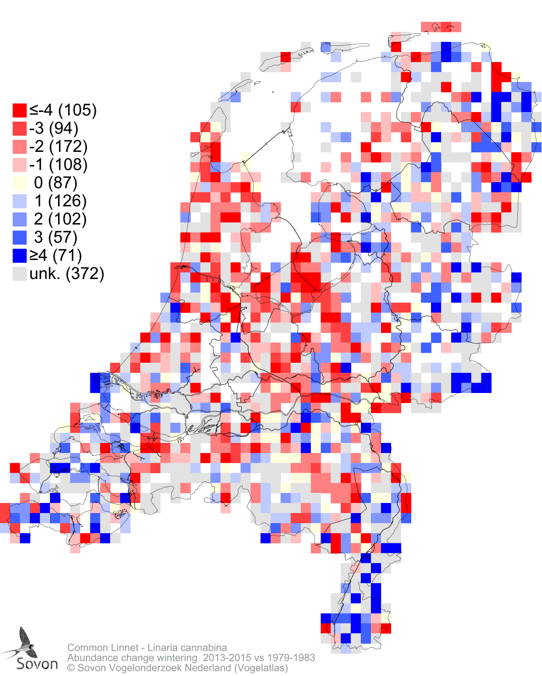 Abundance change wintering 2013-2015 vs 1979-1983