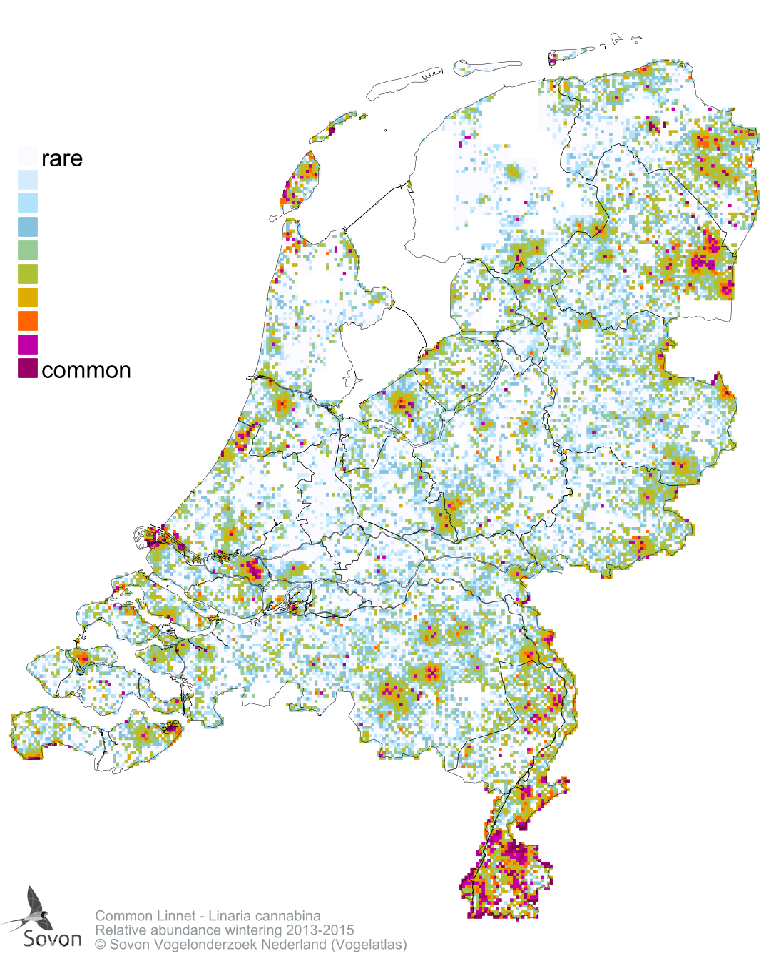 Numbers and distribution of breeding- and wintering birds in The Netherlands