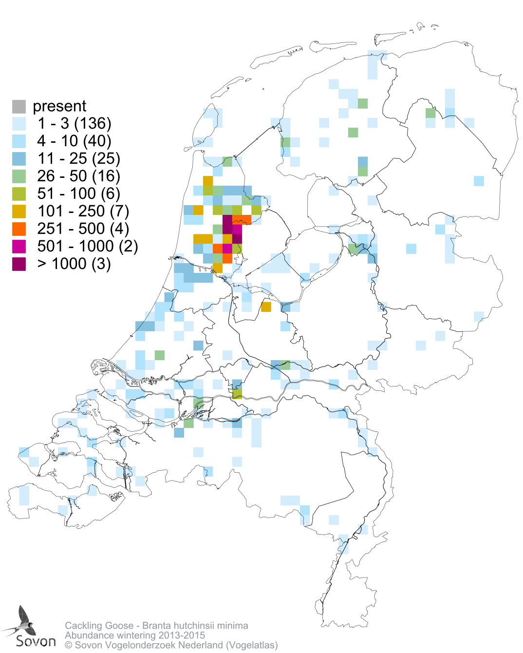 Numbers and distribution of breeding- and wintering birds in The Netherlands