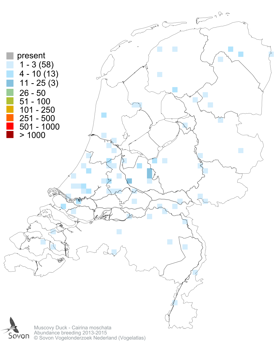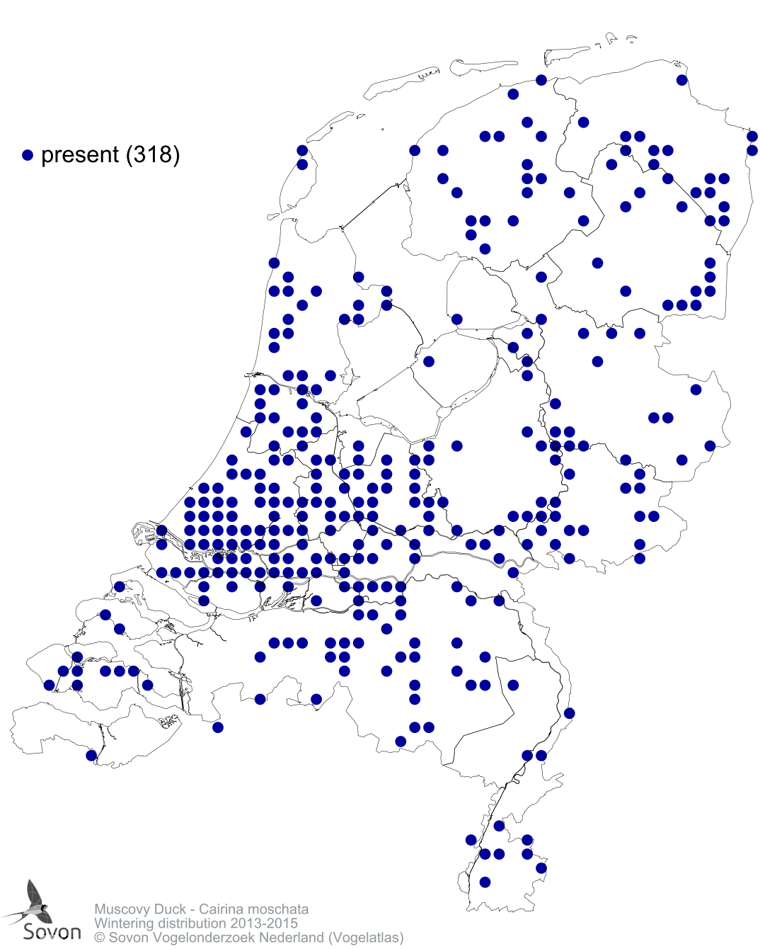 Numbers and distribution of breeding- and wintering birds in The Netherlands
