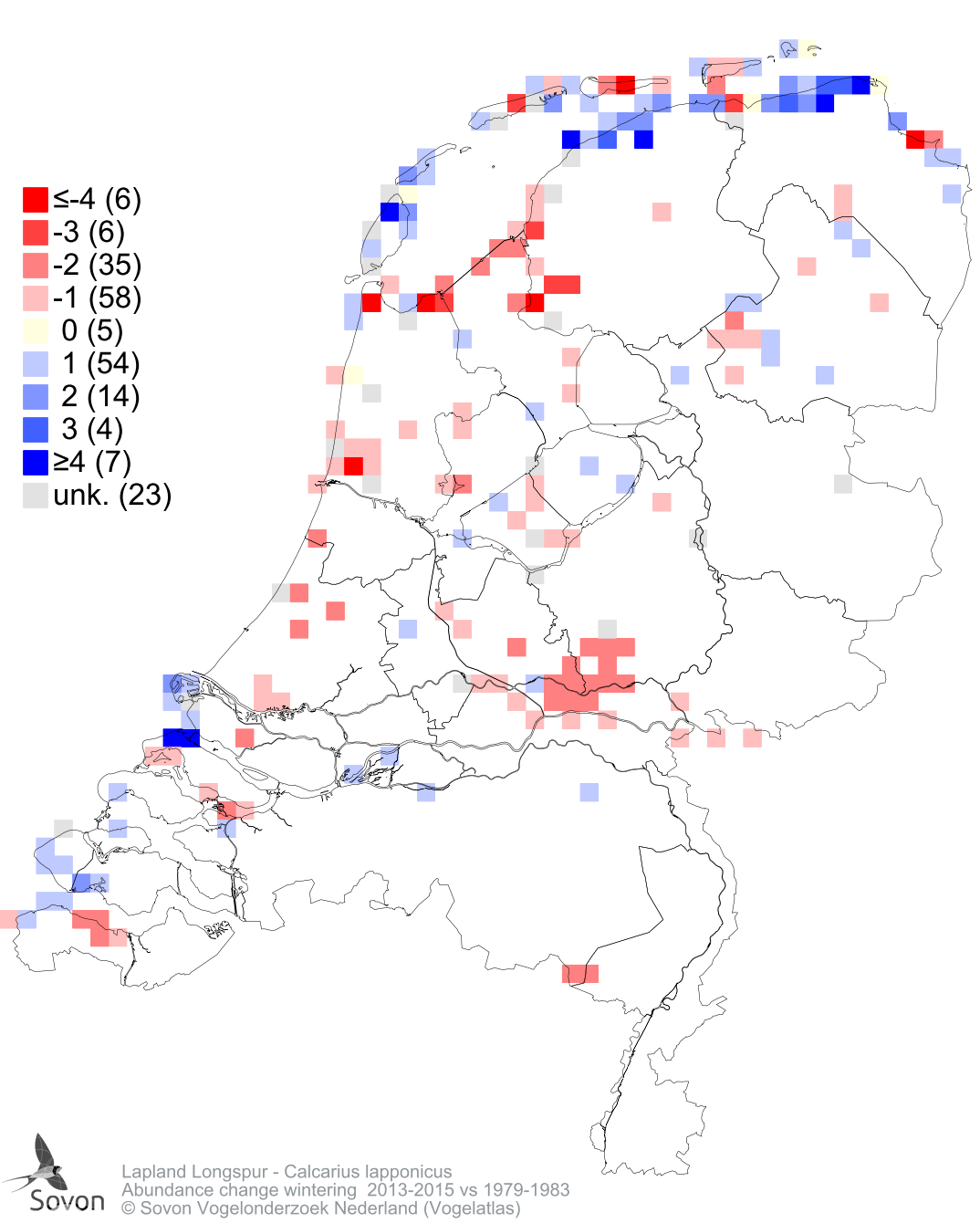 Abundance change wintering 2013-2015 vs 1979-1983