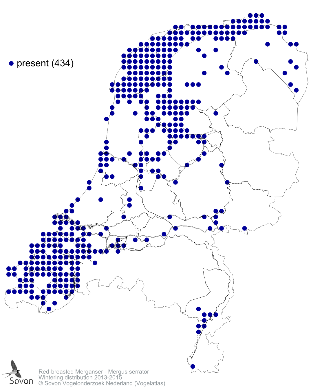 Numbers and distribution of breeding- and wintering birds in The Netherlands