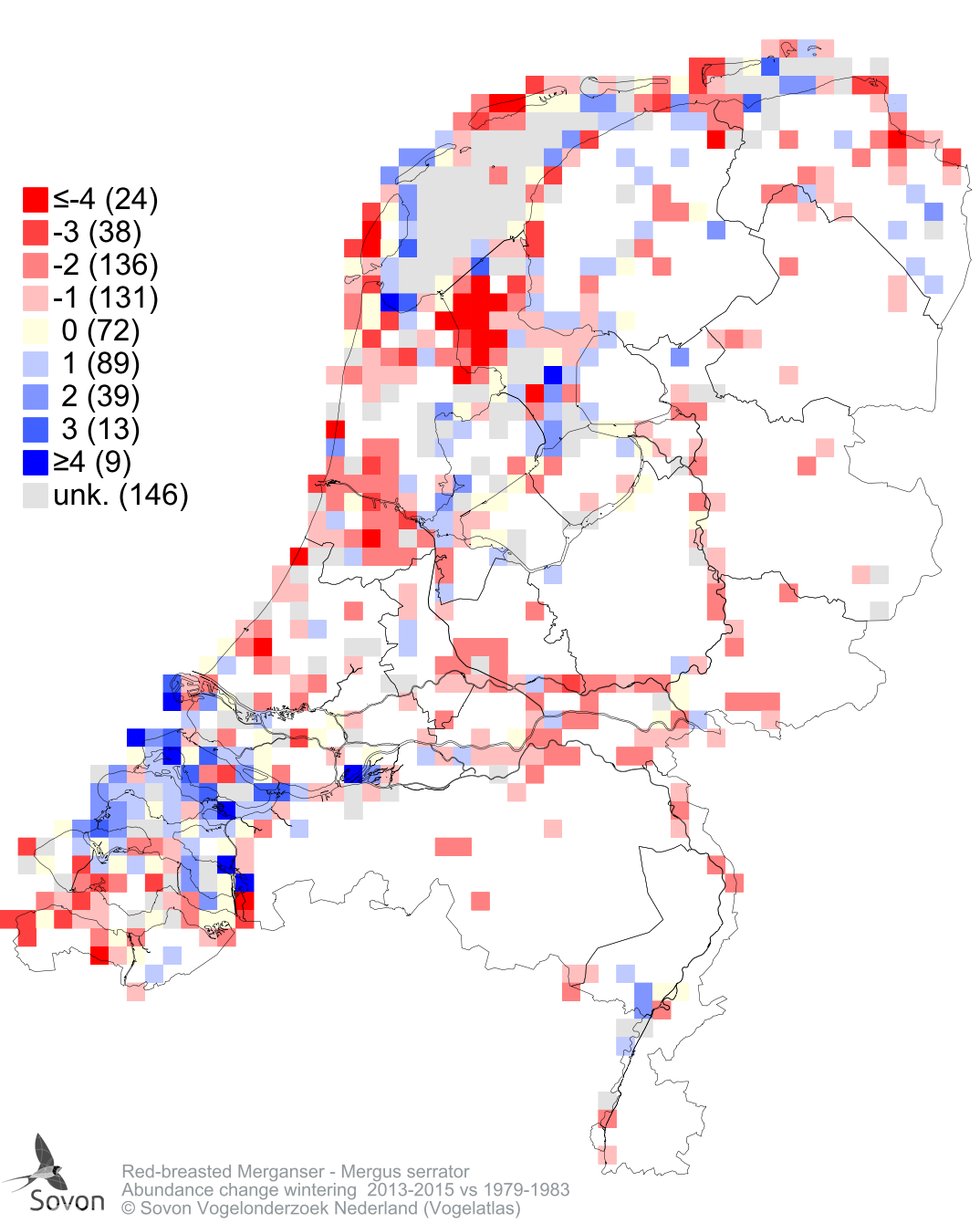 Abundance change wintering 2013-2015 vs 1979-1983