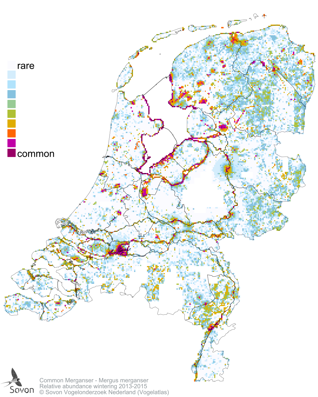 Numbers and distribution of breeding- and wintering birds in The Netherlands