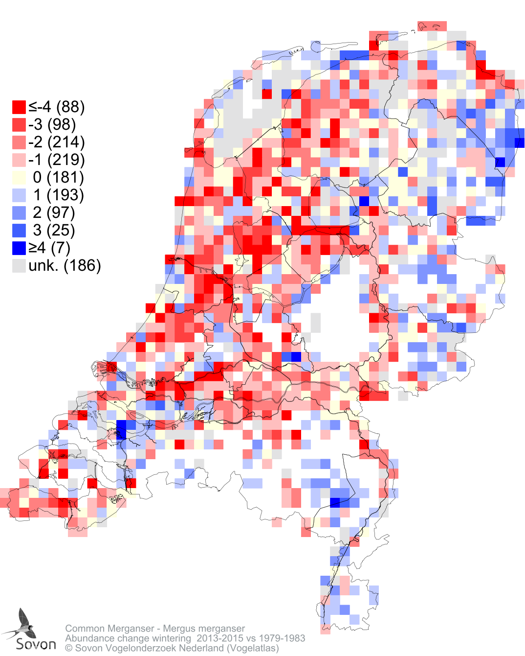 Abundance change wintering 2013-2015 vs 1979-1983