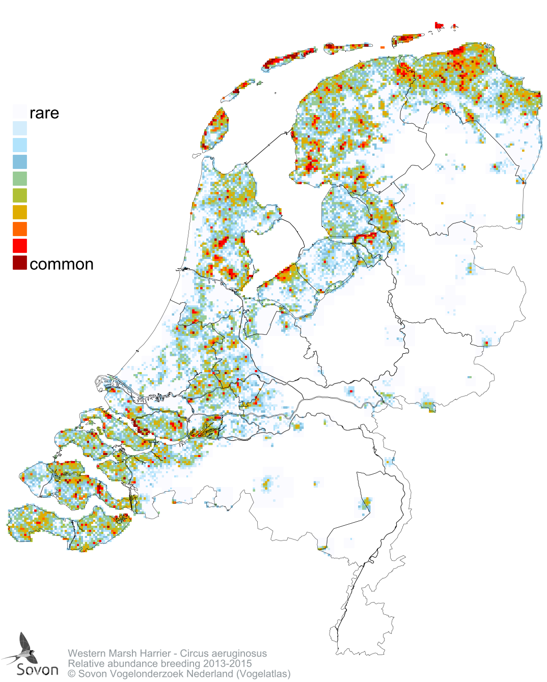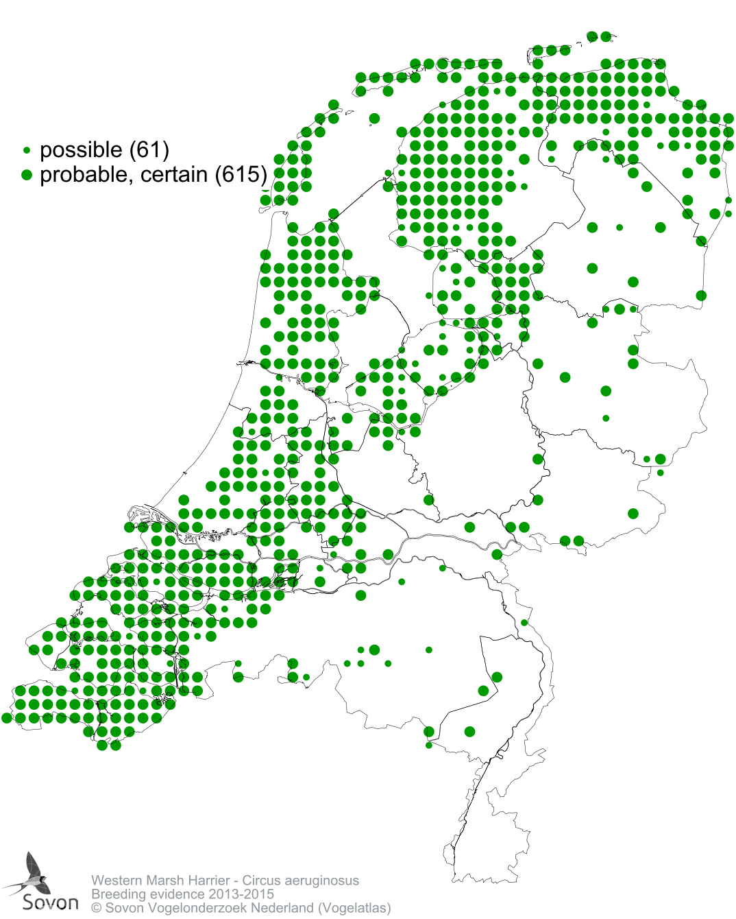 Numbers and distribution of breeding- and wintering birds in The Netherlands