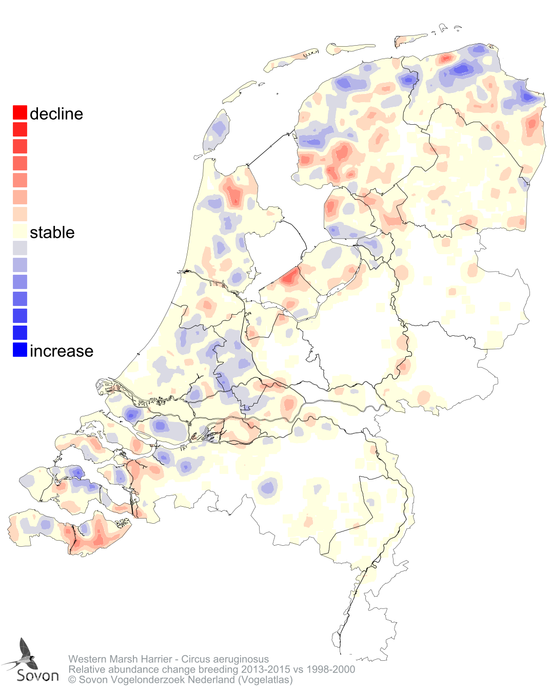 Relative abundance change breeding 2013-2015 vs 1998-2000