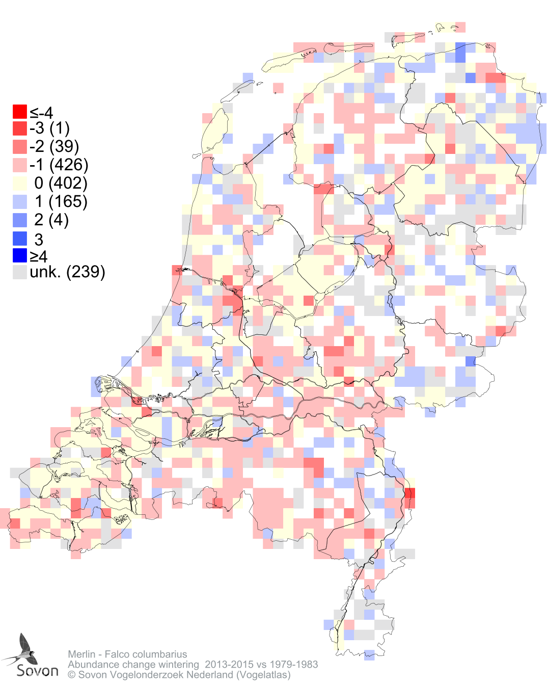 Abundance change wintering 2013-2015 vs 1979-1983