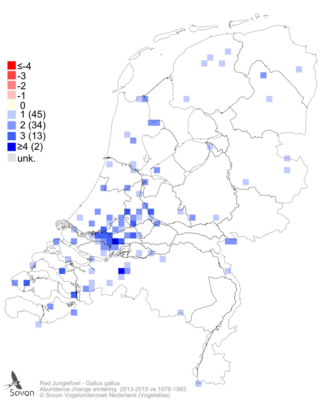 Abundance change wintering 2013-2015 vs 1979-1983