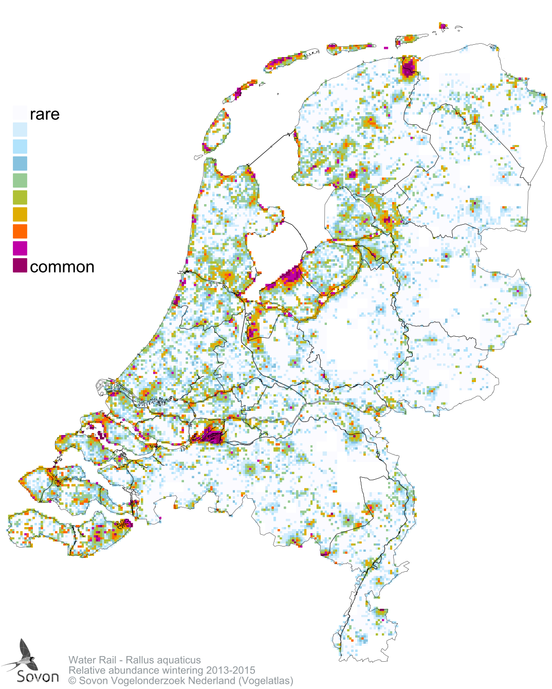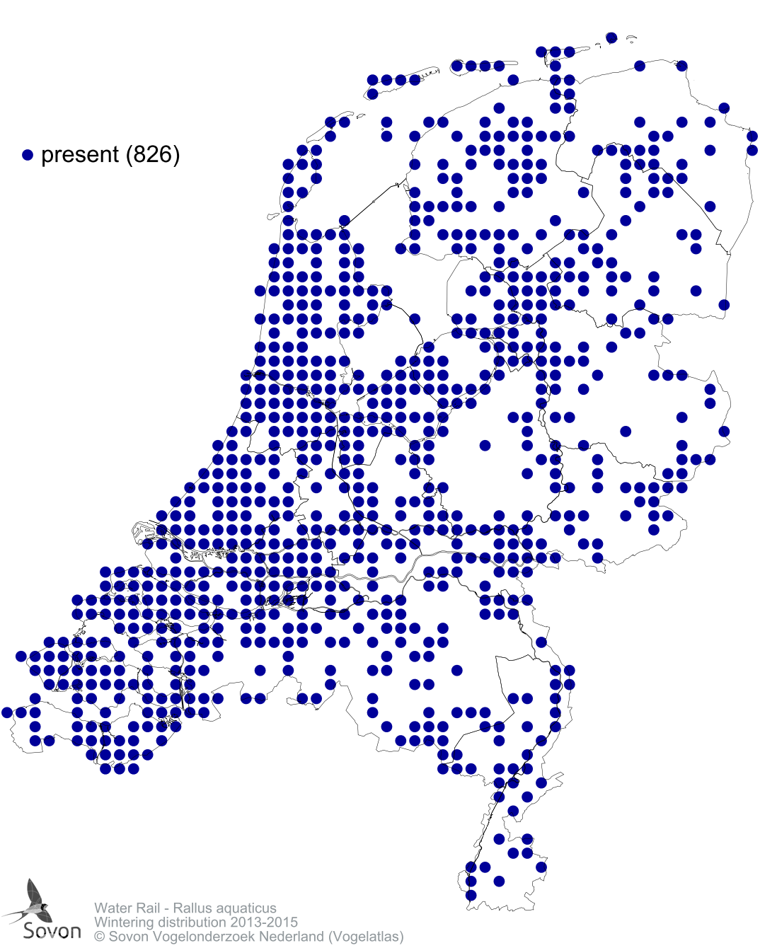 Numbers and distribution of breeding- and wintering birds in The Netherlands