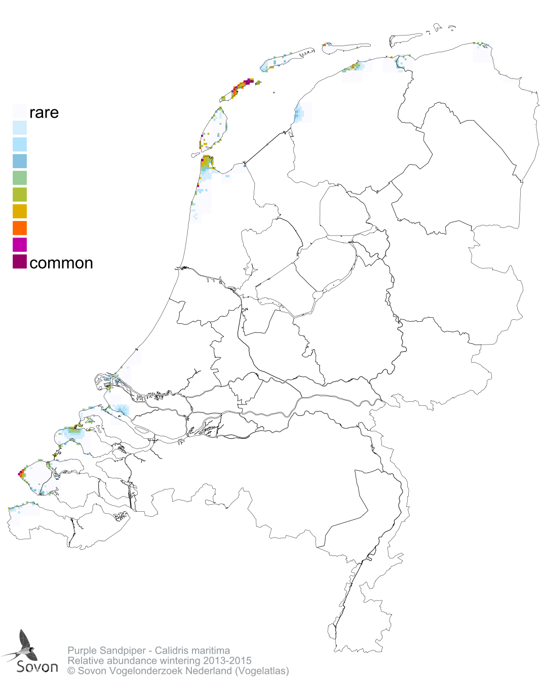 Numbers and distribution of breeding- and wintering birds in The Netherlands