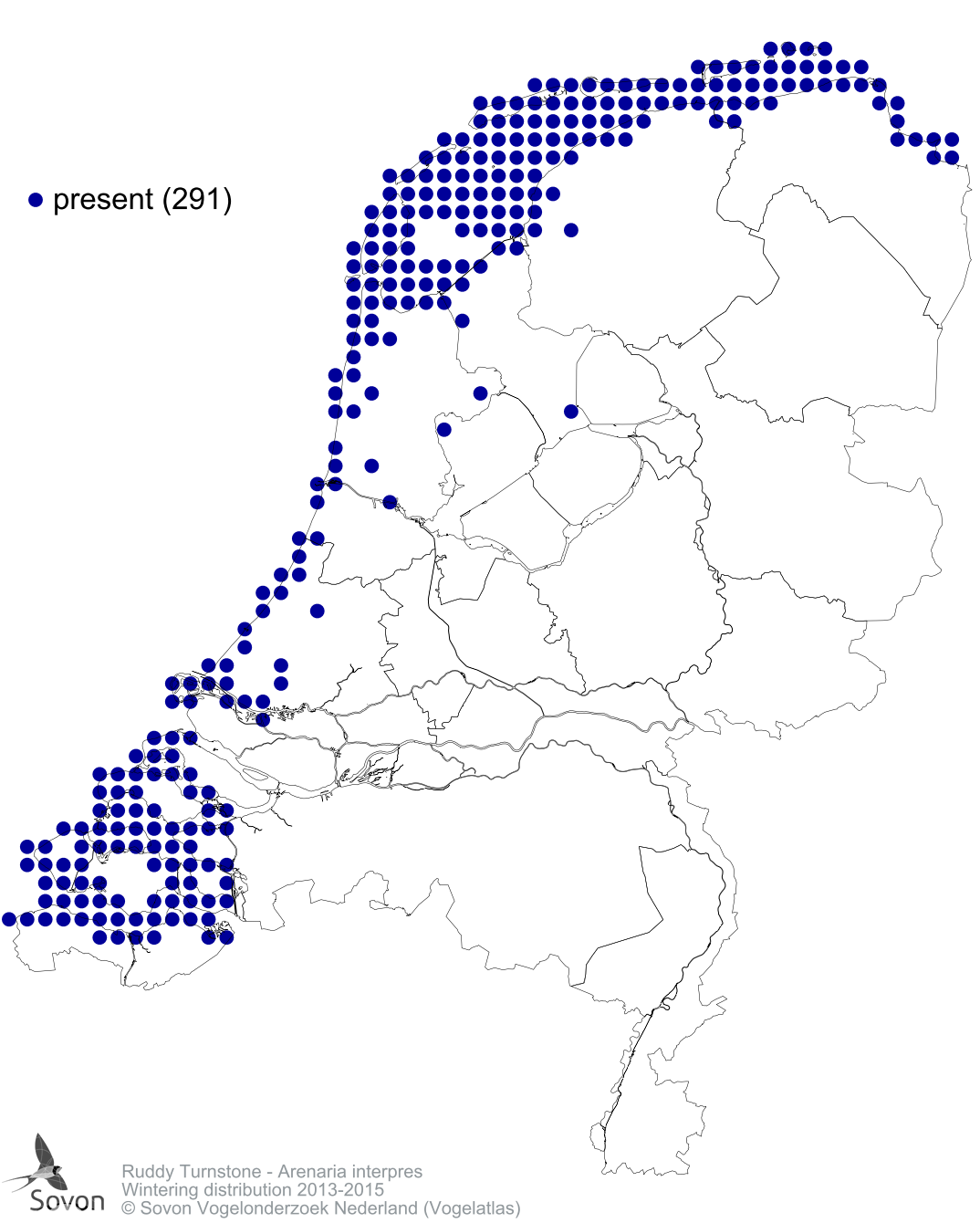 Numbers and distribution of breeding- and wintering birds in The Netherlands