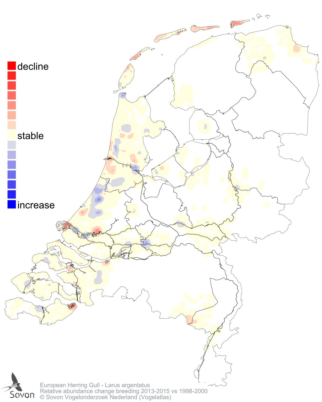 Relative abundance change breeding 2013-2015 vs 1998-2000