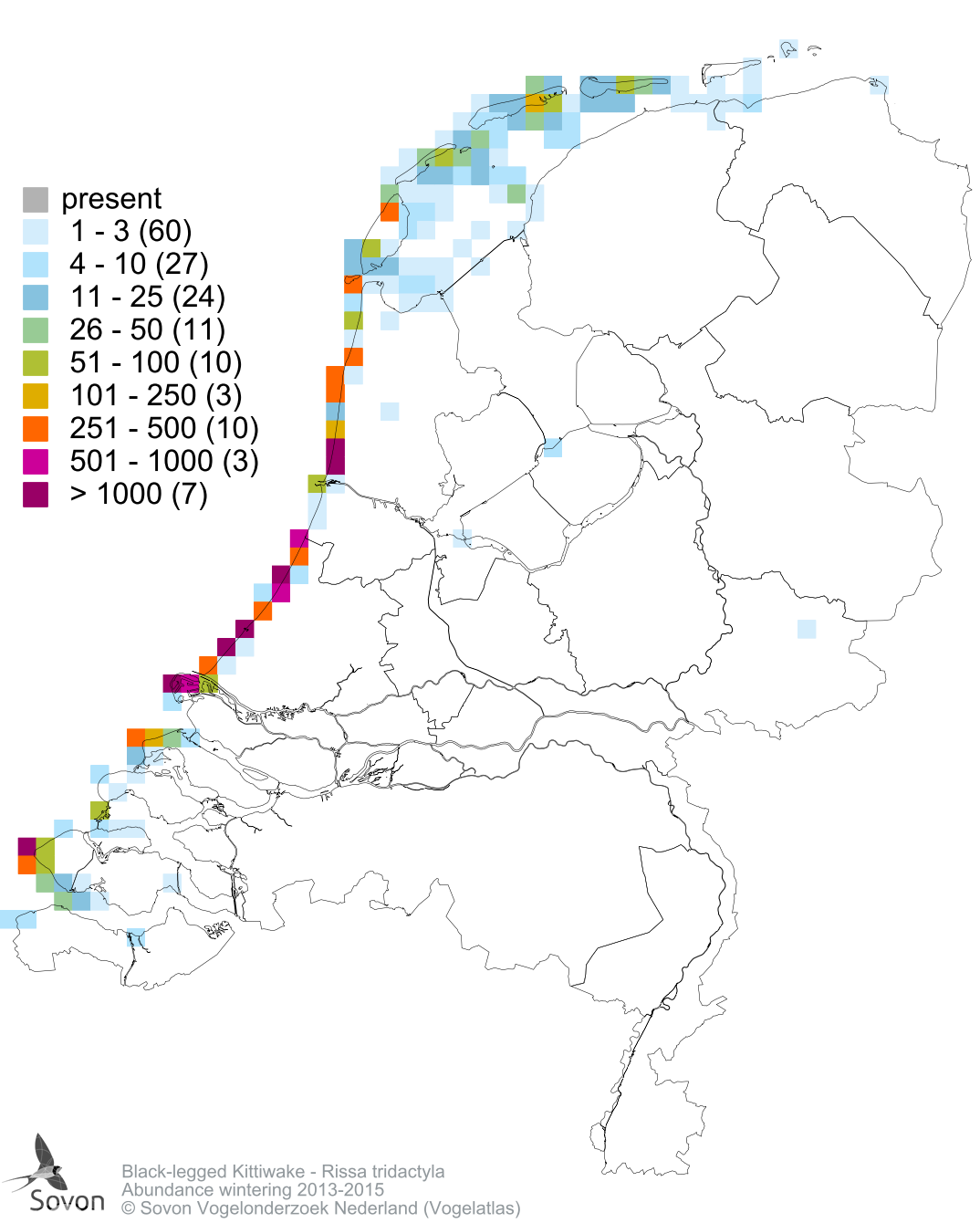 Numbers and distribution of breeding- and wintering birds in The Netherlands