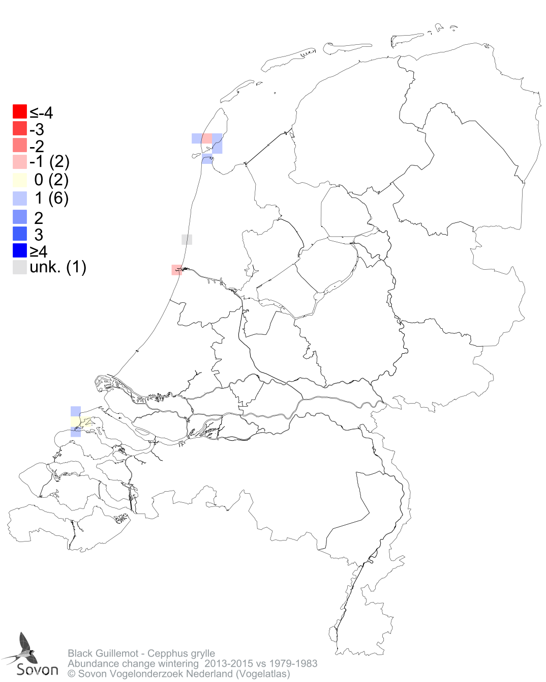 Abundance change wintering 2013-2015 vs 1979-1983