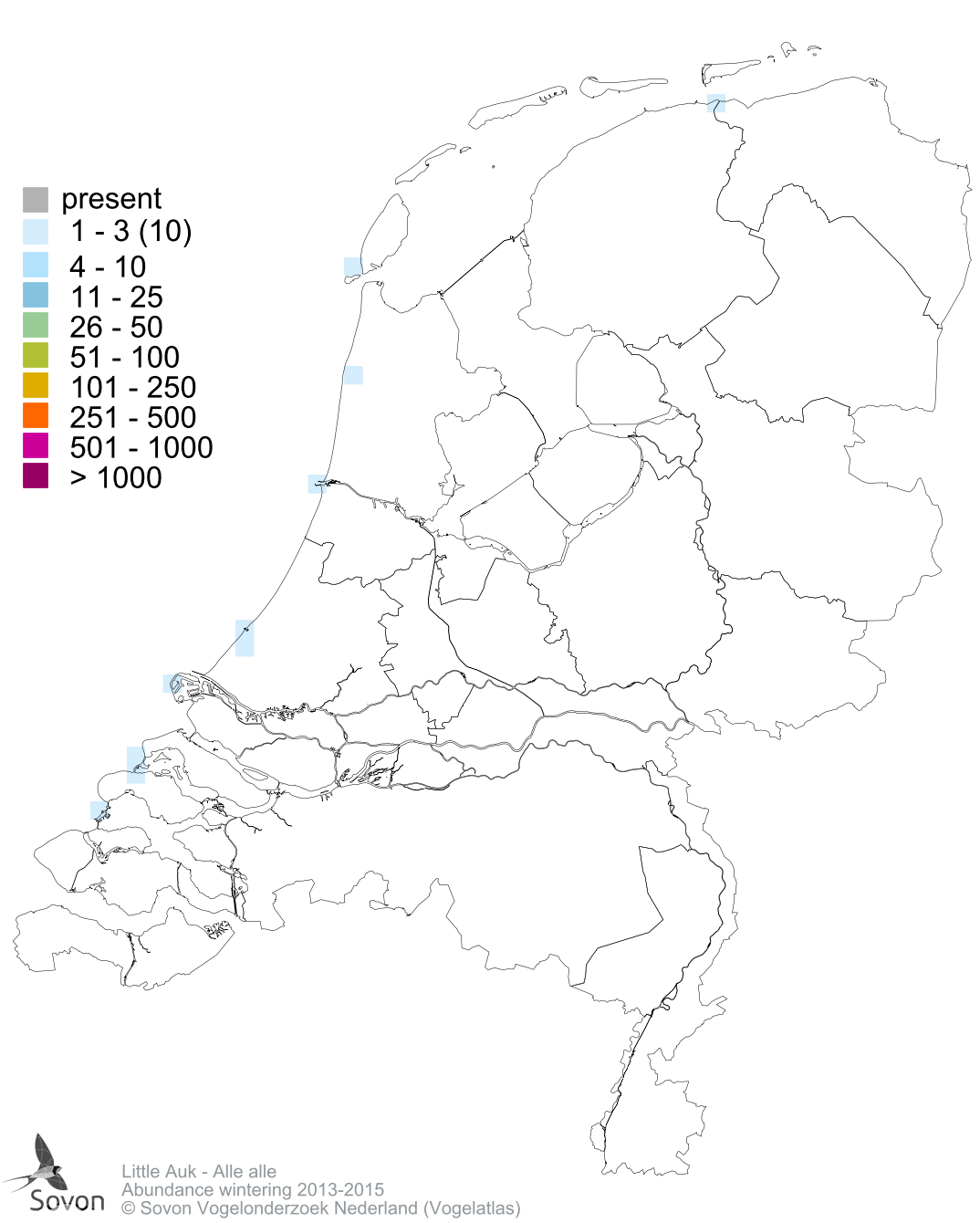 Numbers and distribution of breeding- and wintering birds in The Netherlands