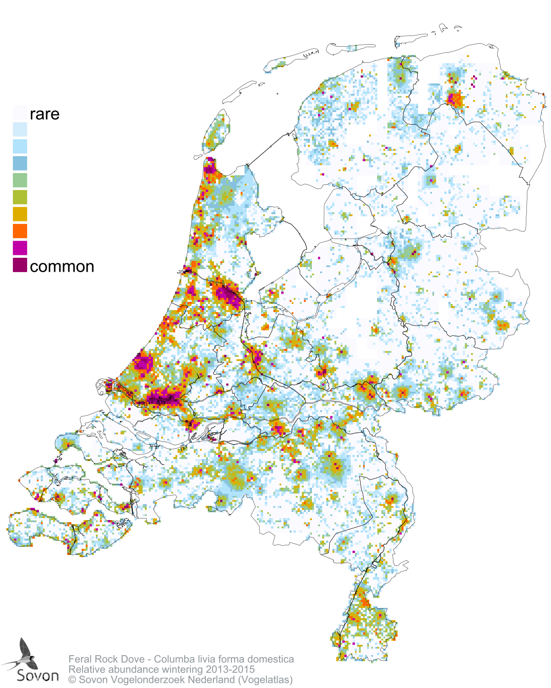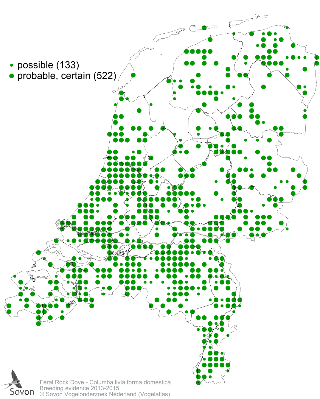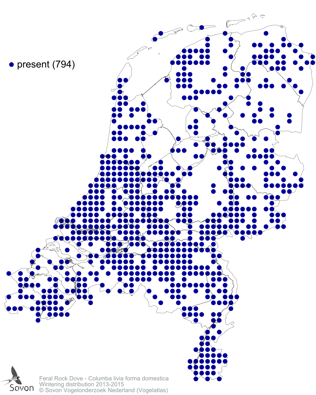 Numbers and distribution of breeding- and wintering birds in The Netherlands