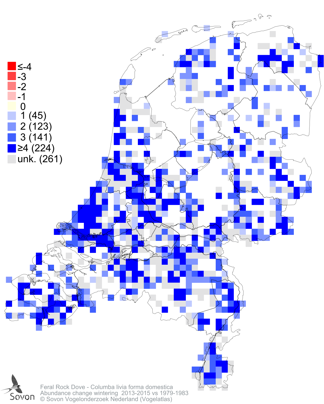 Abundance change wintering 2013-2015 vs 1979-1983