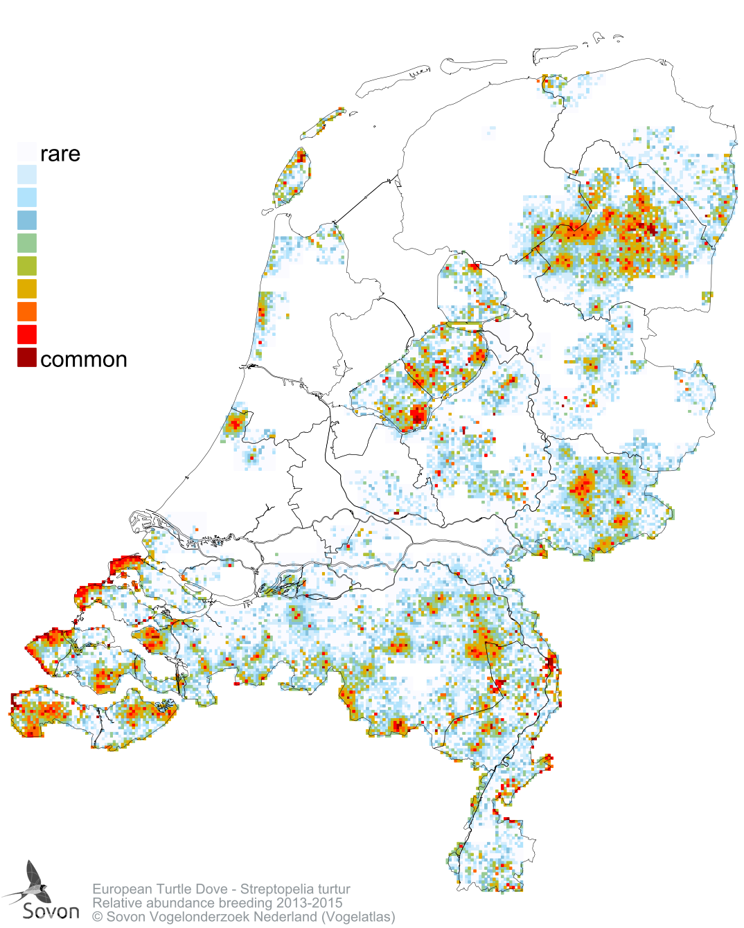 Numbers and distribution of breeding- and wintering birds in The Netherlands