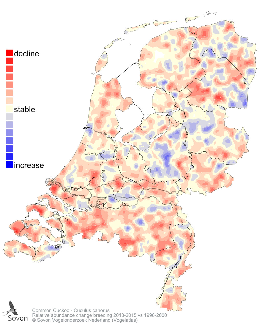 Relative abundance change breeding 2013-2015 vs 1998-2000