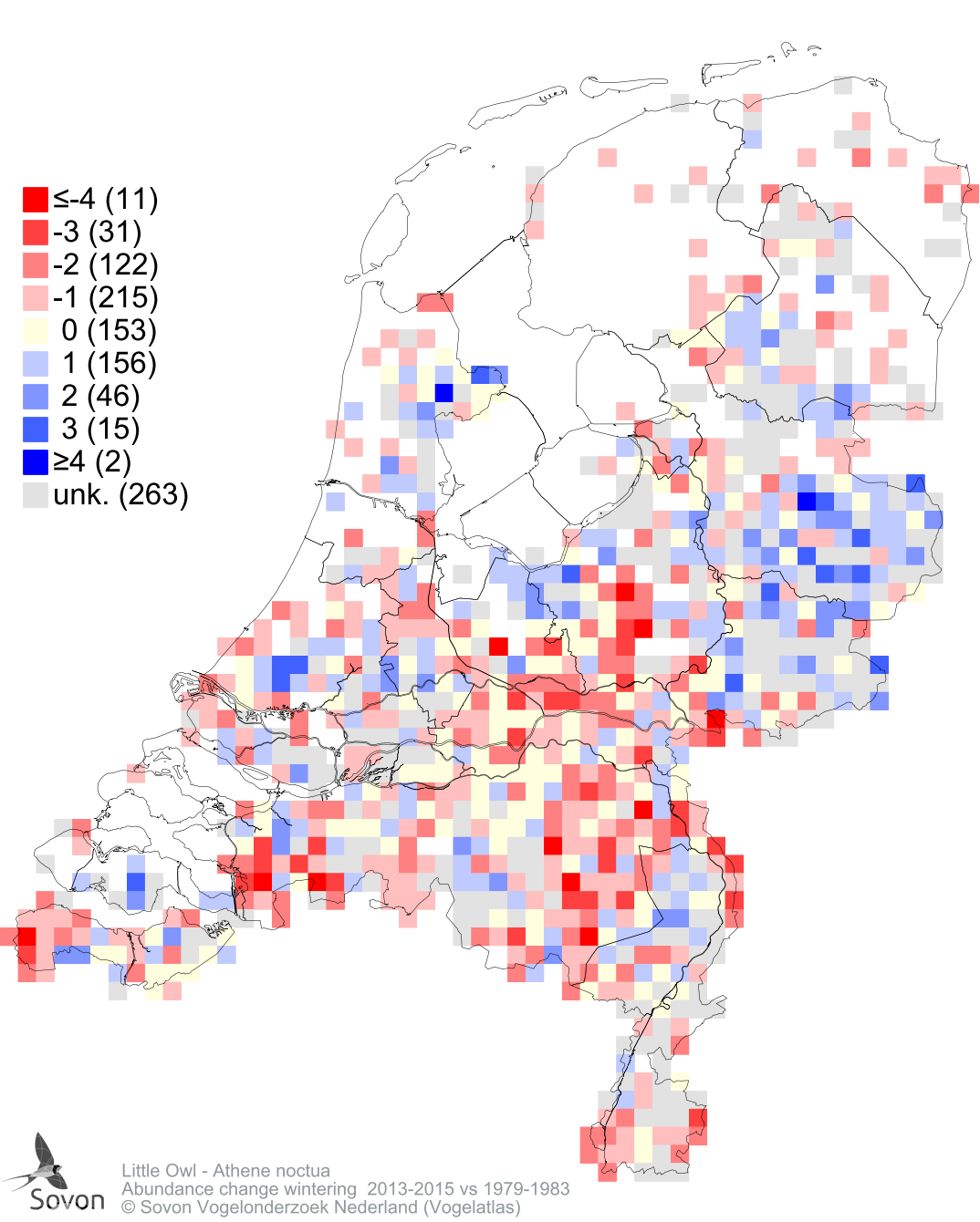 Abundance change wintering 2013-2015 vs 1979-1983