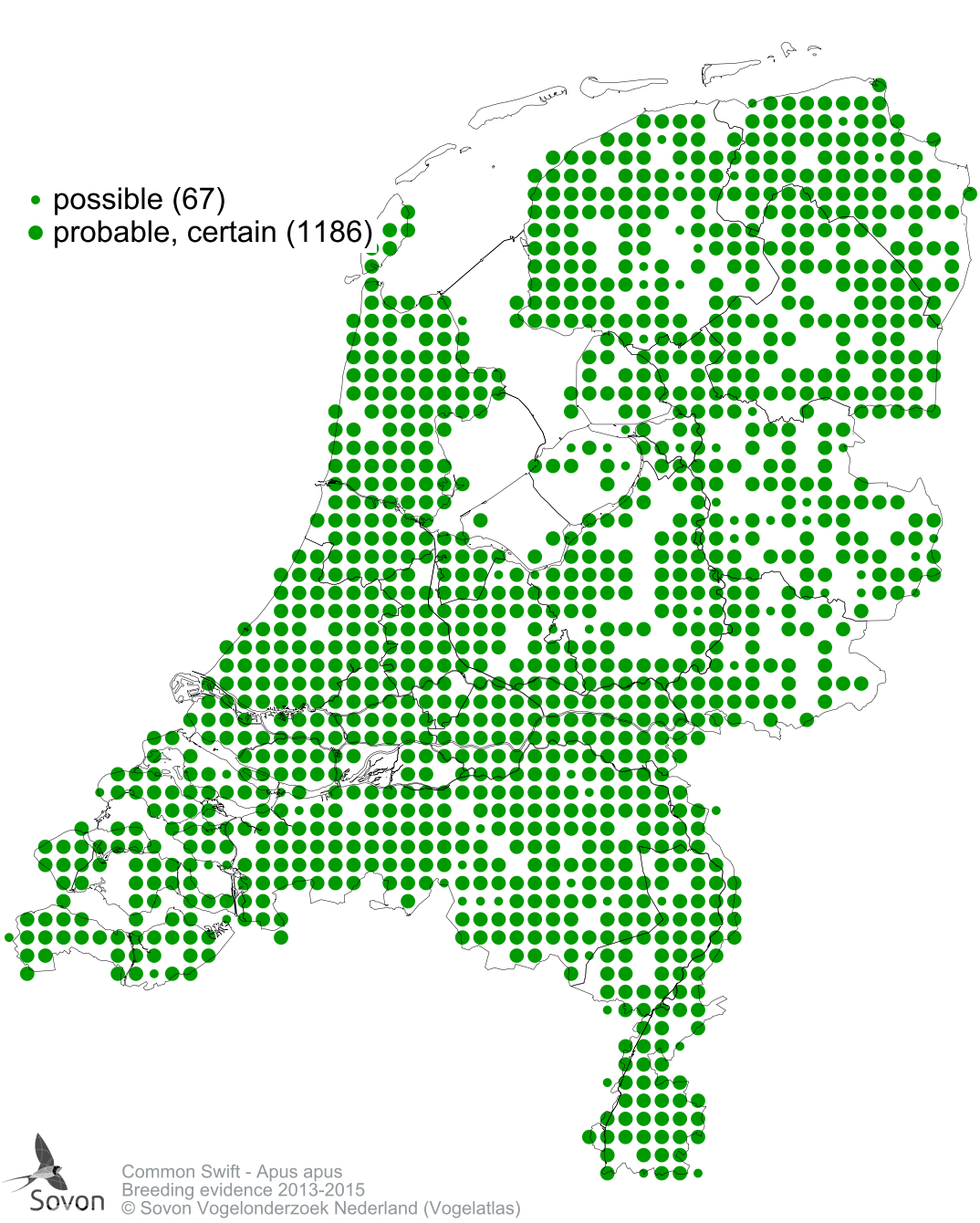 Numbers and distribution of breeding- and wintering birds in The Netherlands