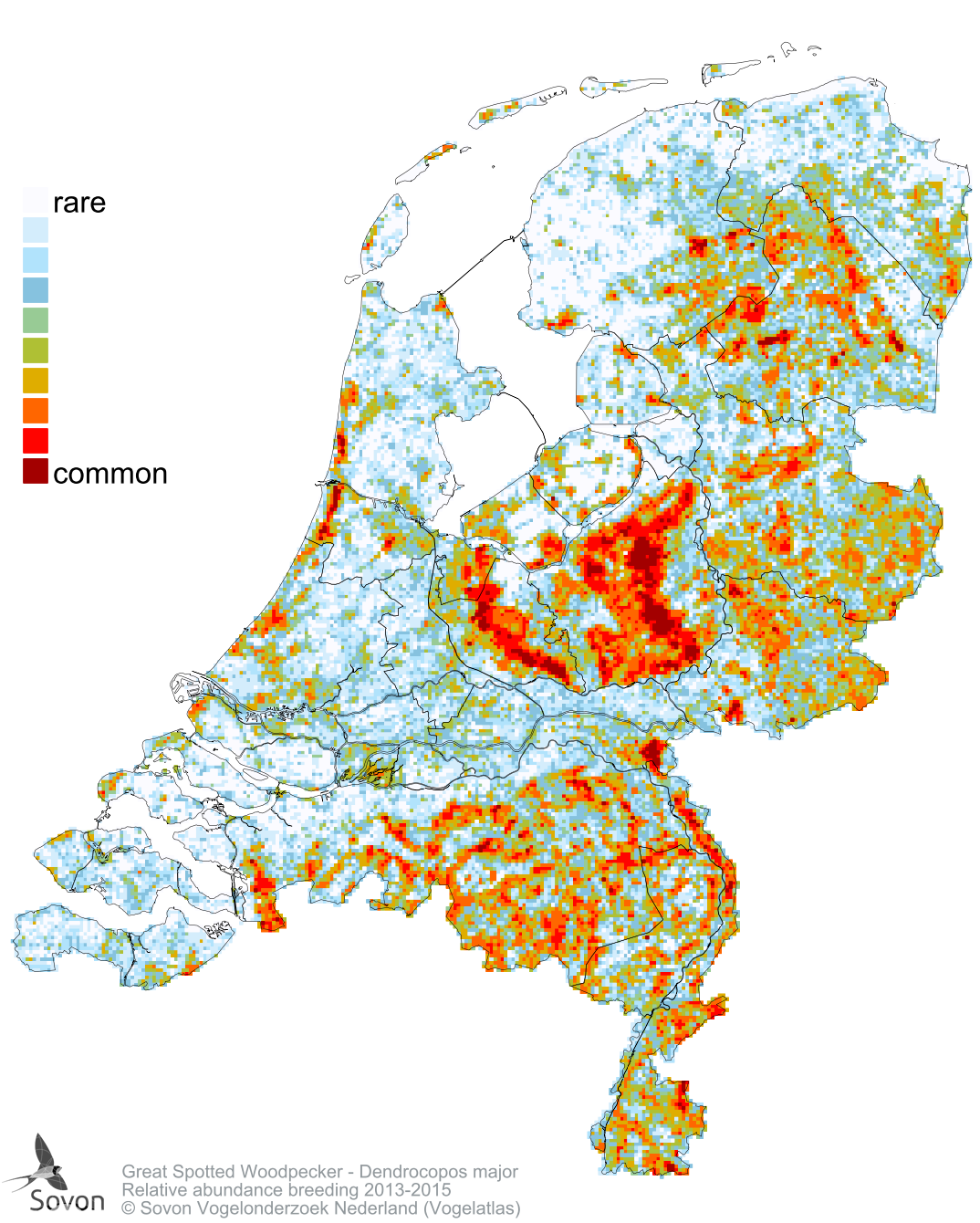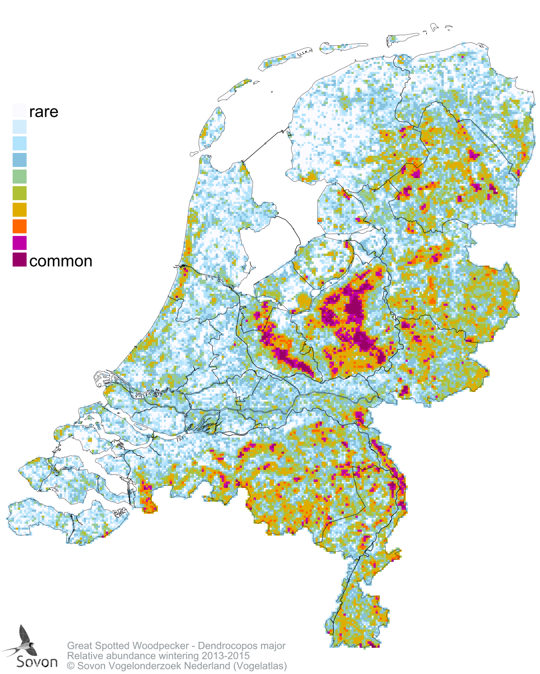 Numbers and distribution of breeding- and wintering birds in The Netherlands