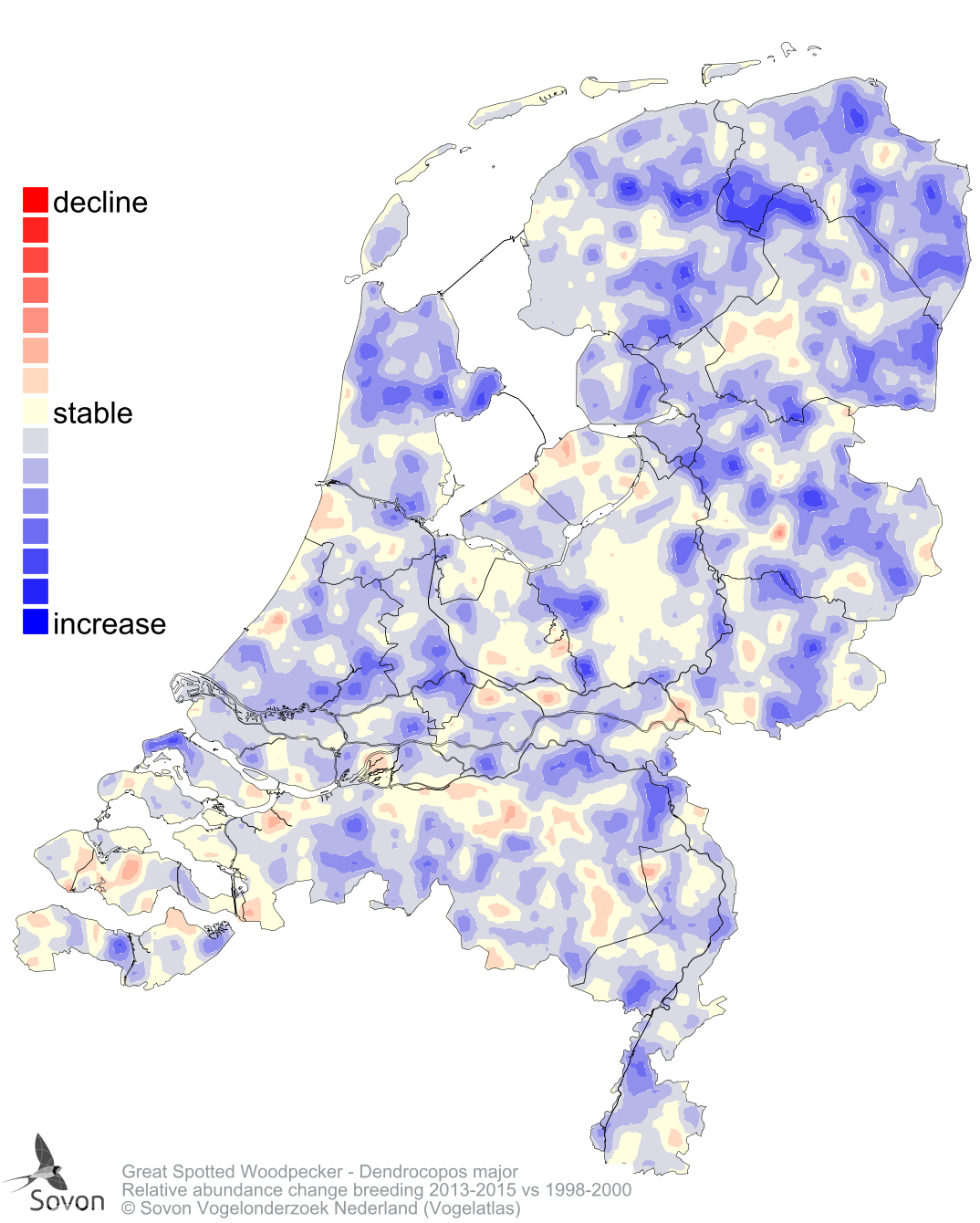 Relative abundance change breeding 2013-2015 vs 1998-2000