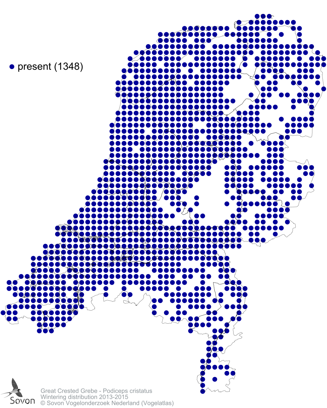 Numbers and distribution of breeding- and wintering birds in The Netherlands